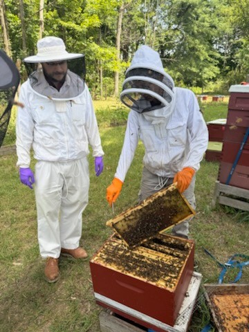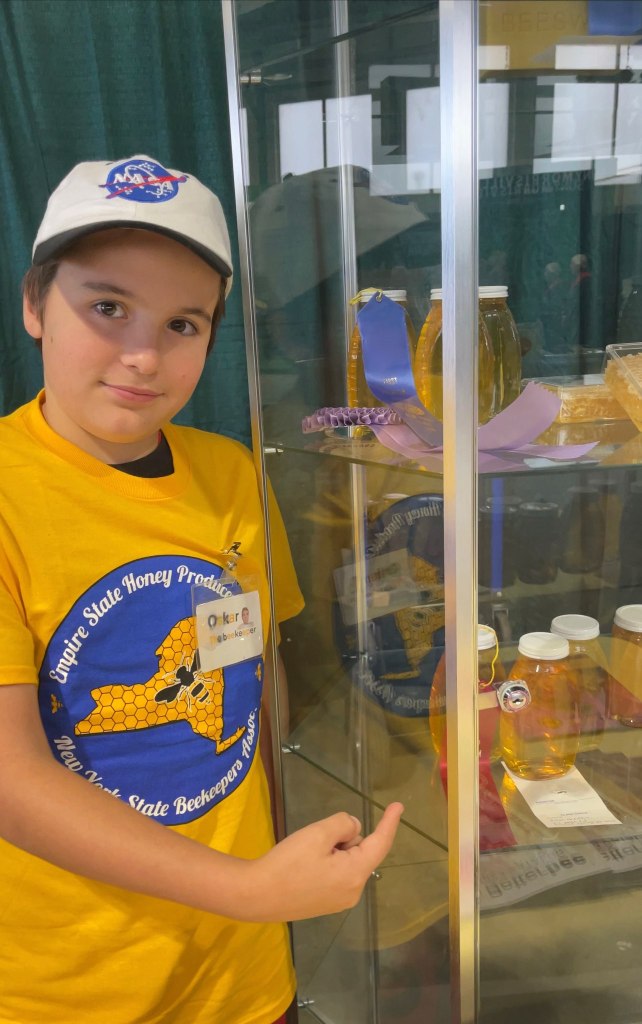 Members of the Leatherstocking Beekeepers’ Association at a deadout inspection. When mice find their way to the honey covered gloves of a beekeeper, the damage can be shocking.Member Mike Hoyt’s apiary in his first winter of beekeeping.Stephanie, Larissa, Jennifer, Kiril, Maria, and Oskar the Beekeeper manned the booth for the Leatherstocking Beekeepers’ Association at the Otsego County Conservation Association Earth Day Festival. April 2024Oskar the Beekeeper was at the 2024 Earth Day Festival in Milford, NY, to chat about bees. April 21, 2024.One way to feed the bees and deal with winter condensation is to roll white sugar into newspaper and place it in the top of the hive under the outercover. It absorbs moisture and when the bees find it they have a nice snack.This beekeeper wanted to save a section of wildcomb her bees made, so she rubberbanded it into a frame. The bees turned it into a whole frame of beeswax and filled it with honey.The cluster of this dead out became so small that they couldn’t keep their queen warm. March, 2024. These bees were healthy looking, other than being dead. March, 2024.A layer of dead bees at the bottom of a deadout in Middlefield. March 2024.Leatherstocking Beekeepers’ gathered at the Apiary of Walt Heinrich, Schenevus, for a workshop on conducting a hive inspection. They learned how to handle frames, manipulate a hive tool, and to read the bees. Held July, 2023.Oskar Grechkin volunteering at the honey table at the 2023 New York State fair, educating the public about honey bees.Oskar the Beekeeper points out his jar of honey on the winners shelf at the New York State fair where he took home the second place ribbon in 2023.This mother mouse has found a home in Dave’s apiary. In early spring, the mouse welcomed a litter.Mice aren’t the only jerks who come to bother hives.This raccoon is another jerk.Bears are not welcome around hives.This is why bears are not welcome around hives.Daylight robbery. These bees are overwhelming a weak hive.