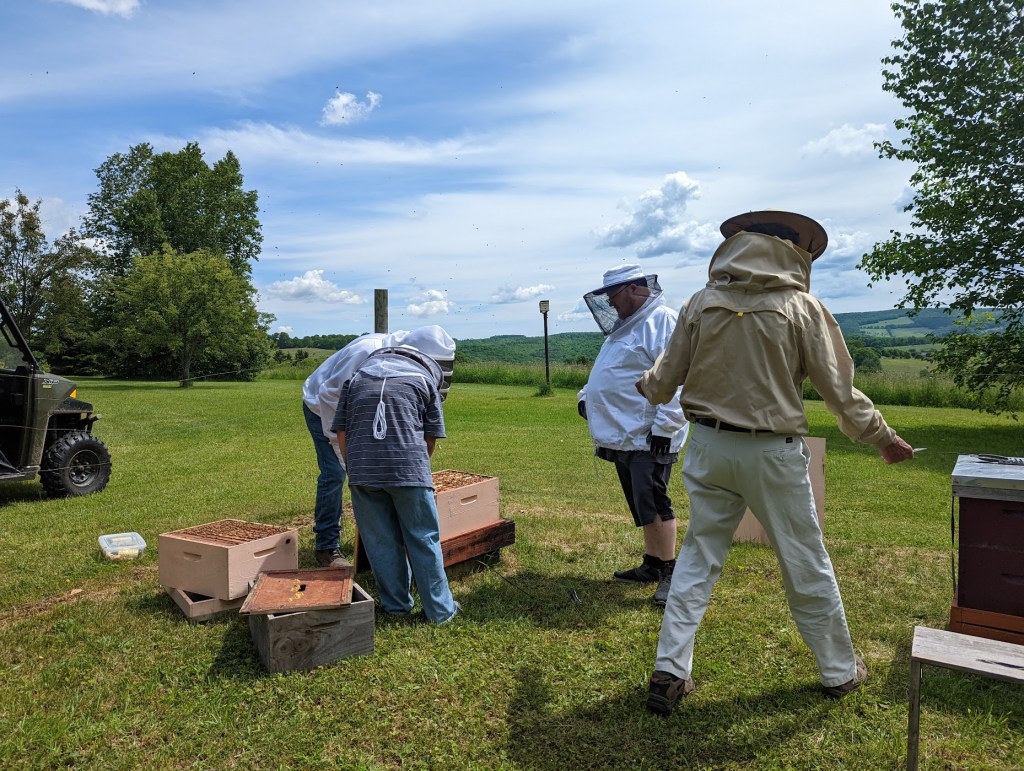 On June 11, 2022, we had a field trip out to long standing beekeeper, Walt’s apiary where we had hands-on guidance in opening, inspecting, and understanding what you see in a hive. We ended with a demonstration of the sugar roll, and we discussed the critical role of detailed record-keeping that can come in handy years later.